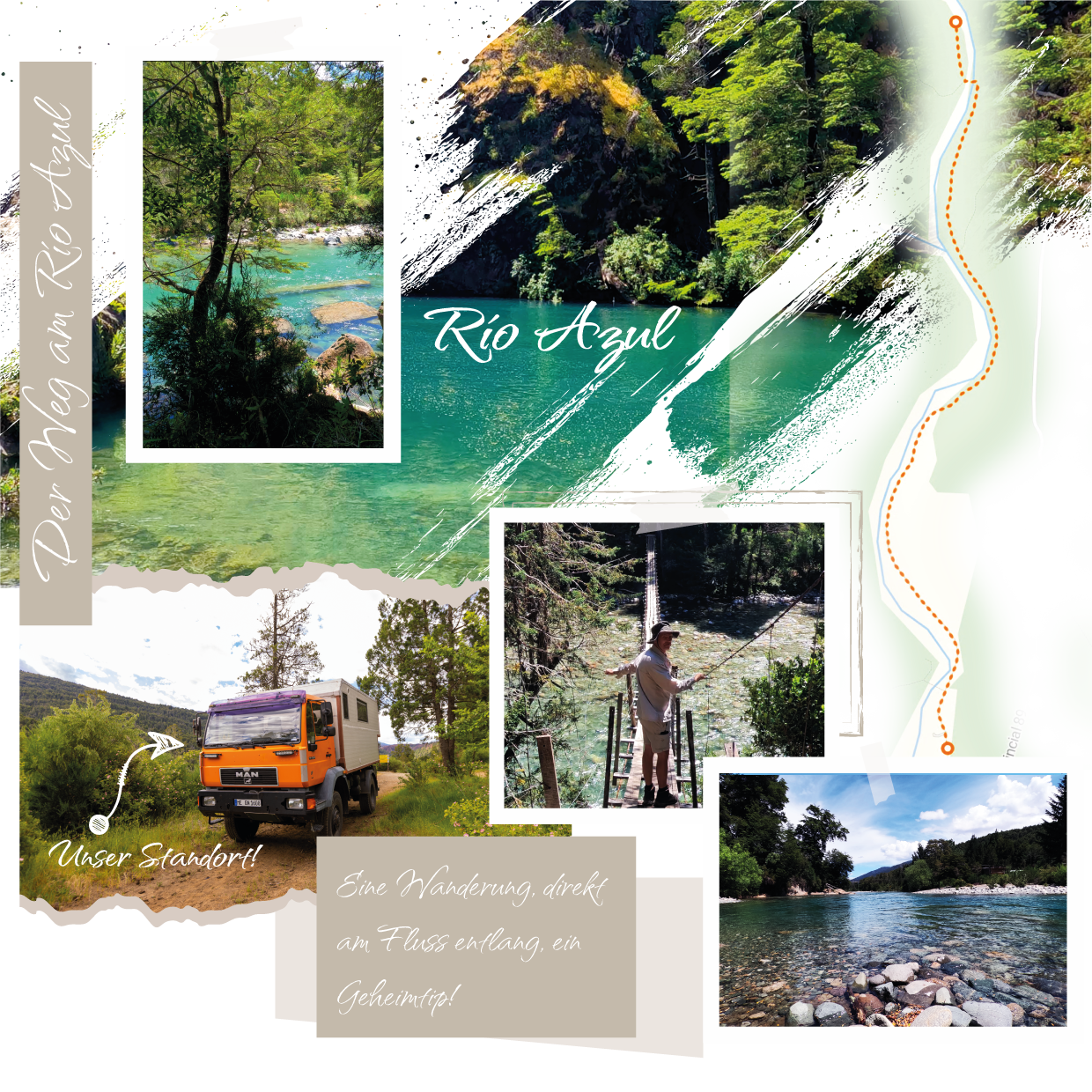 Wir tauchten ein ins Tal des Río Azul — ein Ort, der rund um El Bolsón zu den eindrücklichsten Landschaften zählt: kristallklares Wasser, türkiser Schimmer, kühle Becken, Felsen, Wälder — fast magisch. Es ist bekannt dafür, dass das Wasser in manchen Abschnitten so klar ist, dass man bis zum Grund schauen kann.